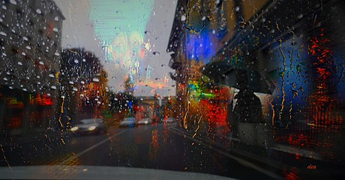 Driving in circles, rain sprinkling windows;